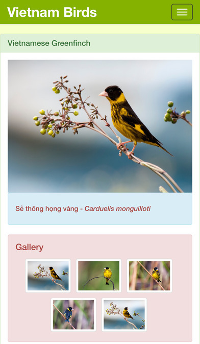 Vietnam Wildlife Tours & Research started the project since 2012 to develop Vietnam Bird Guide, a free apps now available for both iOS and Android devices. The application is a product of many year's effort in collection of photographs and sounds as well as detail information compilation of each species including distribution range within Vietnam, birding spots appearance that birders may go to see, taxonomy notes and more.